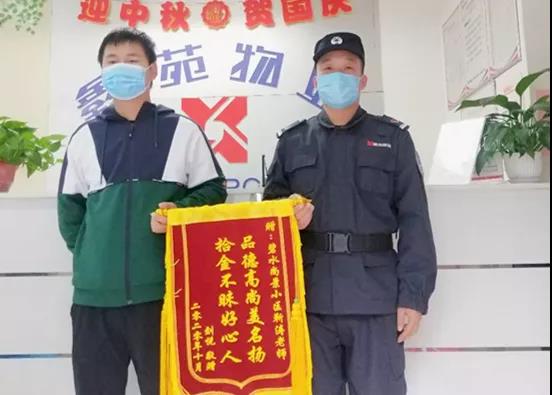 一天过去了,背包却迟迟无人认领。之后,物业人员在背包中发现了一份报名表,通过拨打上面的电话这才与失主成功取得联系。失主在电话中连声道谢,称自己是七号楼业主,因着急拿东西在路途中自己把包掉了也没发现,随后业主马上来认领并当面感谢。第二天,业主就带着一面写有“拾金不昧好心人,品德高尚美名扬”锦旗送到了物业管理处,而他只是憨憨一笑,说这不是自己应该做的嘛!