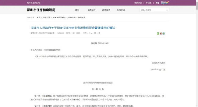 近日,深圳市人民政府审核通过《深圳市物业专项维修资金管理规定》,并予以发布。