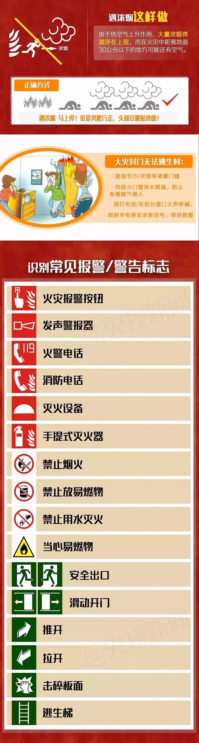 火灾的自救必学常识吧