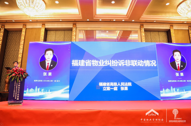 12月4日,“良法善治与行业发展”第三届物业管理法治论坛暨法律政策工作委员会2020年度工作会议在福州市召开。福建省高级人民法院立案一庭庭长张果在论坛上针对“健全诉非联动中心,完善非诉讼纠纷解决机制”做了主题分享。