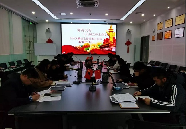 11月27日、12月4日,中共安徽信达房产党委第五支部暨安徽信达建银物业在物业公司二楼会议室组织开展了党员大会。组织支部所属党员、预备党员、发展对象、重点培养对象、入党积极分子以及部分中层管理人员,专题学习《党的十九届五中全会<建议>学习辅导百问》部分章节。