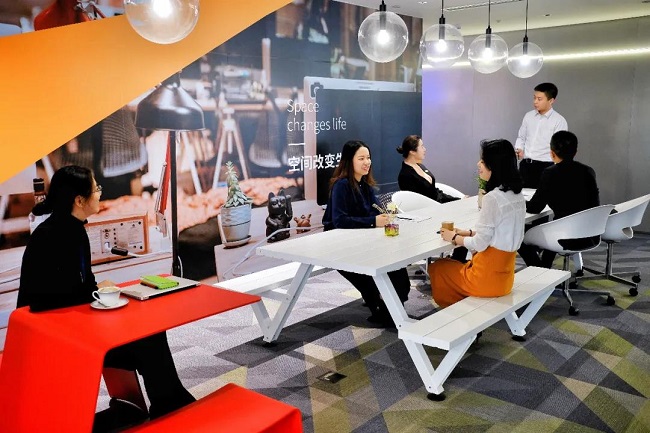 基于信任文化的搭建,我们打造了共享机制:营造软性环境,提升员工幸福感,让员工把幸福感传递给客户。如我们现在的楷林中心北区25A办公室,实行共享办公,考勤云端打卡、办公用品自助,云桌面,共享会议室、自助咖啡、母婴室、跑步机、电话间等等。
