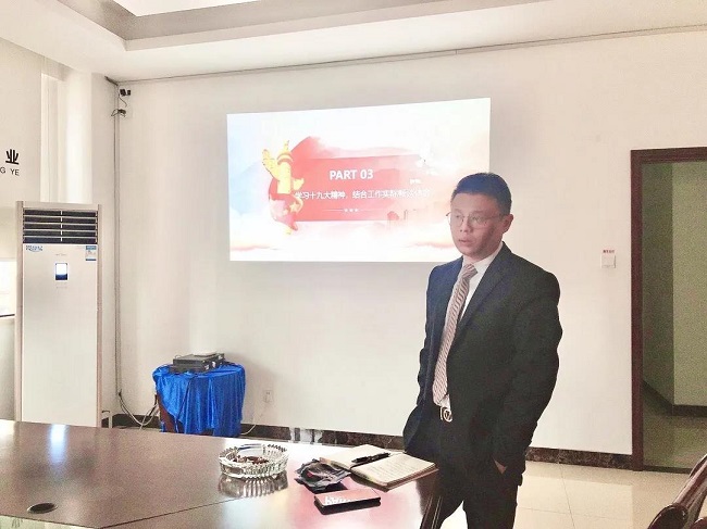 ▲党员、项目经理学习十九大精神,结合工作实际畅谈体会