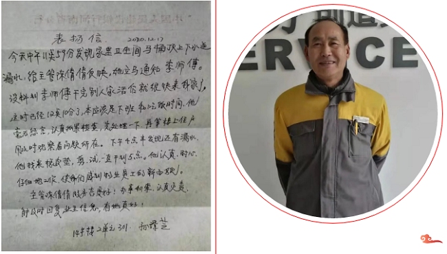 2020年12月17日中午,正美物业金融花园客服主管陈倩倩接到14号楼业主关于家里卫生间顶部漏水的报修,立刻通知维修师傅李尚申。此时,李师傅正在其他业主家维修,忙完之后,他顾不上吃饭、休息,立刻赶到14号楼业主家中,进行维修处理,并对维修效果进行测试、确保正常使用。