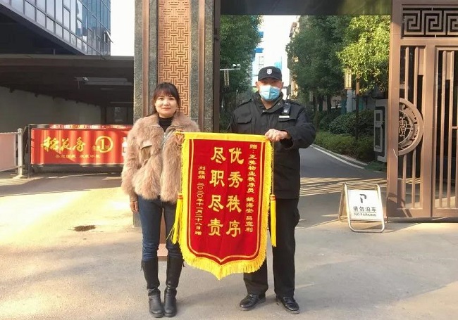 2020年12月16日上午,正美物业国宾府2号楼业主刘女士特送来“优秀秩序 尽职尽责”锦旗一面,感谢物业秩序员姚海安、吕宽利。
