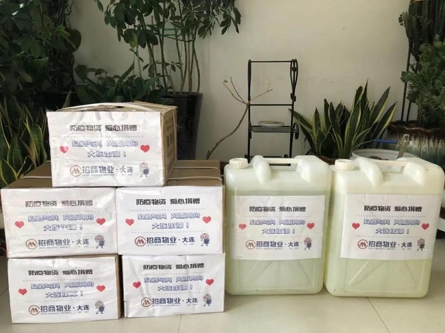 在接到大连市物业协会发起的防疫物资捐赠通知后,盘点了现有物资之后,共捐赠一次性口罩1000个、84消毒液40L、酒精50L。彰显出招商物业的社会责任,一方有难八方支援。