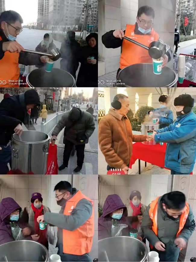今天,全国多数城市的室外气温跌破多年同期历史最低值,济南已达到-20度,是名副其实的“极寒天气”。物业工作人员为保障园区业主正常的工作和生活秩序,保证设施设备的正常运转,提前数天已启动特殊天气应急预案,24小时轮流值班为业主提供暖心、贴心服务。由于项目基层员工凌晨就已冒着极寒天气开始工作,各项目积极开展员工关爱行动,不仅提醒员工注意上下班的出行安全,注意保暖,同时为坚守在岗位上的一线员工熬制姜汤、奶茶、红枣茶等暖心茶饮,送上一份关爱,展现集团家人文化,希望将这份爱转换成员工的优质服务传递到业主心间。