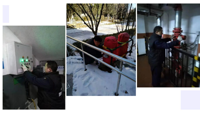 定时巡查户外设备,以保证设施设备的正常运行,做好应急措施,提醒业主做好预防寒潮工作。安保、工程、保洁人员全天候轮流值班,保障各项目园区环境和公共设施设备安全,做好防寒防冻工作,避免突发事件的发生。