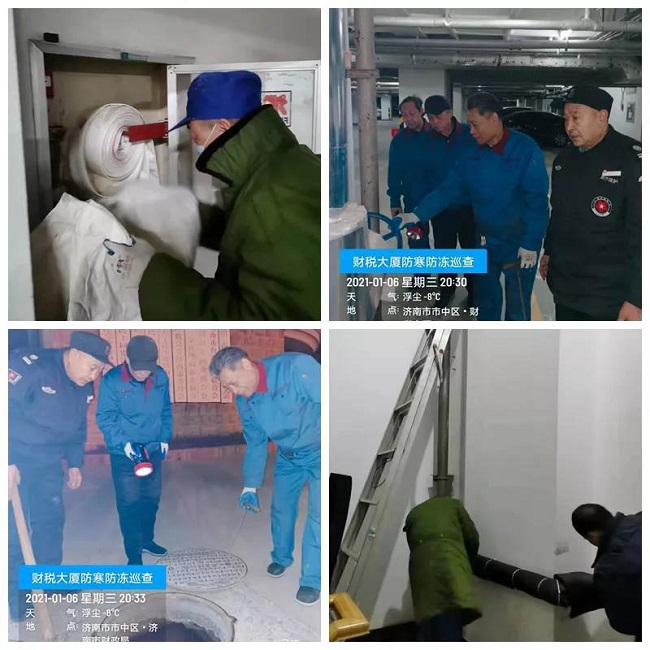 提前谋划,认真做好防寒防冻的前期准备工作。济南市物业综合服务公司要求各项目要加强对小区内各种设施设备的排查,特别是对裸露在外的水管等设施要做好保暖工作,对楼顶、室外的公共管网采取包扎、覆盖等防寒防冻措施,预防低温冰冻引起爆裂。加强水、电、气等设施设备的巡查维护、抢修等预防工作,做好应急准备。
