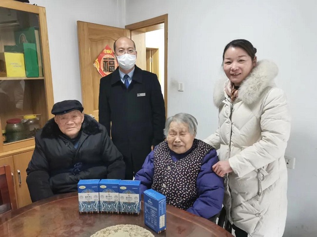 2021年1月6日,滨江物业爱心团成员林瑜与郭伟走访、看望了杭州西兴敬老院的老人们,并代表公司向敬老院捐赠50斤青稞米以及食用油与牛奶等物品。