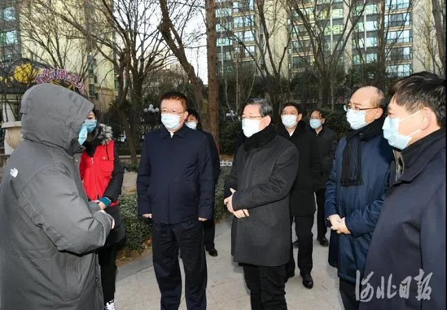 1月6日是石家庄启动全员核酸检测、强化人员流动管控的第一天。省委书记、省人大常委会主任王东峰到石家庄市调研检查。省委副书记、省长许勤参加调研检查,并实地察看了桥西区恒大城小区核酸检测情况,对小区核酸检测等防疫工作表示肯定。