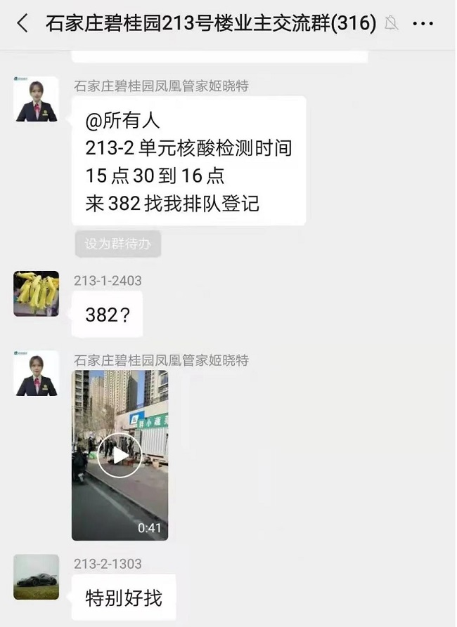 图|碧桂园凤凰城物业管家在业主群组织业主分批进行核酸检测