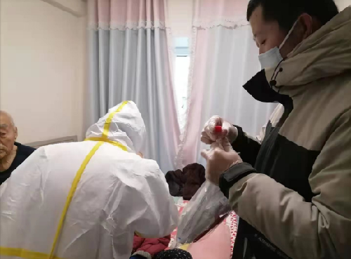 图|医护人员在张奶奶家进行核酸检测取样