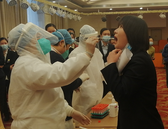图为1月8日至1月10日,华中集团各公司有序组织核酸检测,采样人员按照规范流程,穿戴防护设备,逐一进行检测。截至1月11日,所有送检员工核酸检测结果均为阴性。