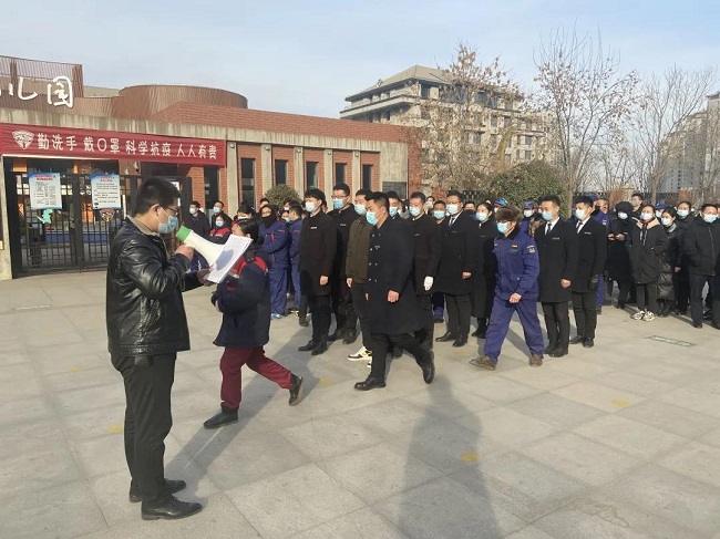 金易达物业各项目每日、每班对员工进行体温检测、所有员工戴口罩上岗,加强自身防护的同时严防值守。