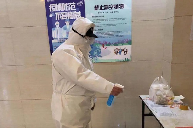 图为物业员工为业户送午餐