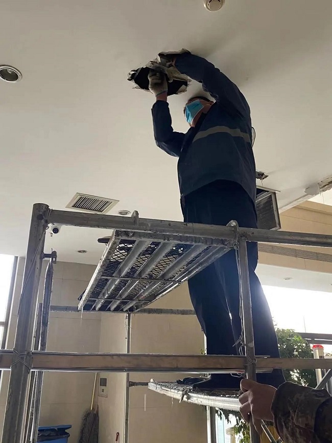 图为工程部师傅维修现场。