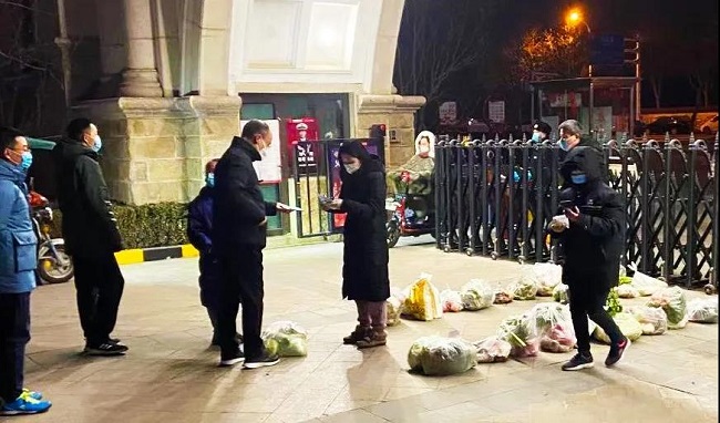 图为永昌物业各项目工作人员变身采购员,积极联系供应商,采买各类蔬菜、水果等生活必需品。