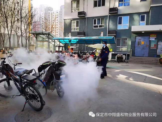 图为中翔盛和物业消杀现场。