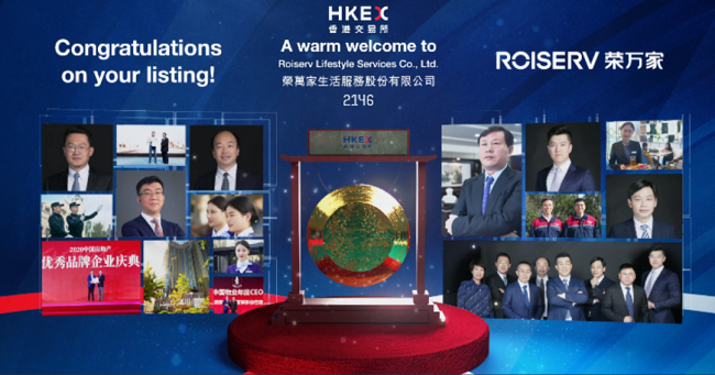 受到当下疫情防控的影响,荣万家的上市仪式通过云敲锣的方式完成,以网络视频形式呈现港交所金融大会堂现场上市场景。
