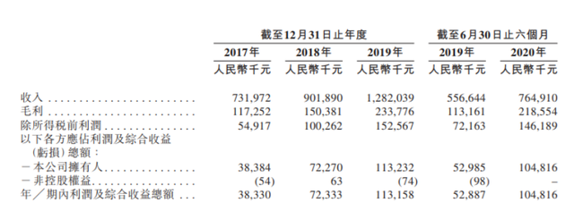 首先是营业收入方面,2017-2019年,公司收入由7.32亿元增至12.82亿元,复合年增长率为32.3%;而在净利润方面,2017-2019年,公司的净利润从0.38亿元增至1.13亿元,年复合增速达71.8%,换句话说,三年时间公司净利润规模增长了近200%