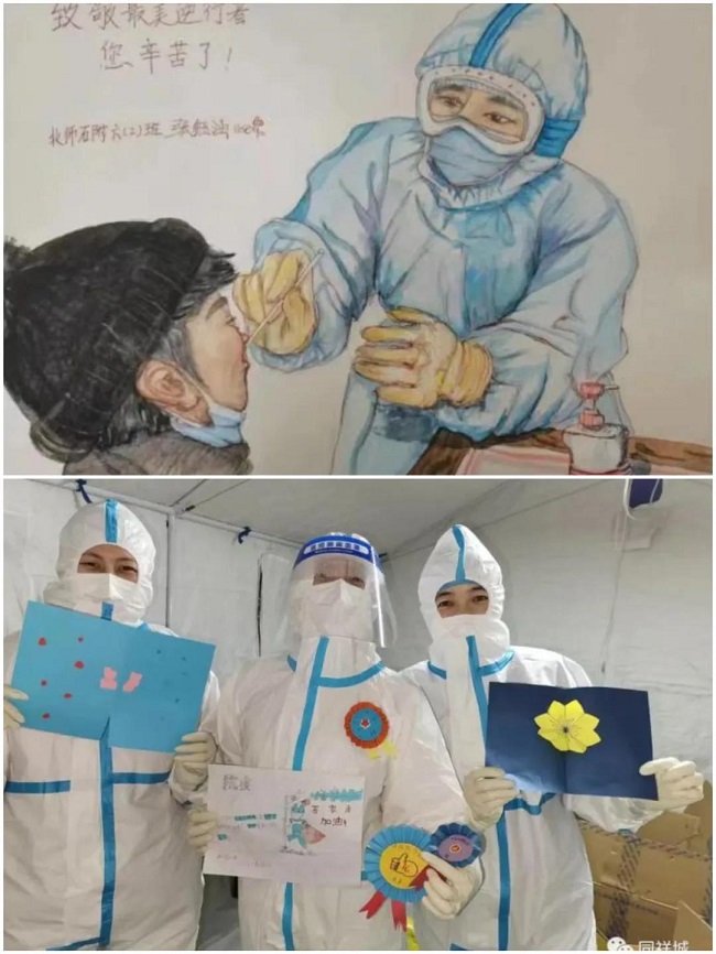 东胜物业、新东方物业的小业主送给防疫人员的画