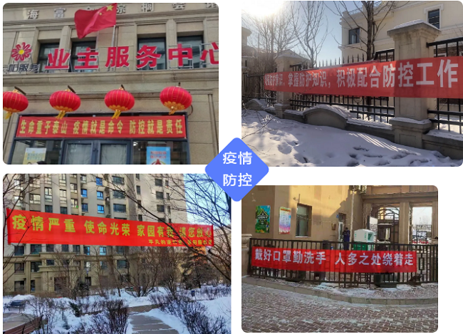 疫情再次袭来,景阳服务所辖各小区立即在出入口、小广场、单元门等显眼位置张贴条幅、通知等,时刻提醒业主注意防疫。