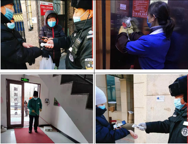 景阳服务积极配合、响应街道及社区防疫工作,秩序部24小时严防各门岗出入口,严控外来人员及车辆,检测体温、核实健康码状态、扫码登记……将病毒隔离在家园之外。