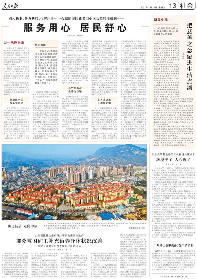近年来,安徽合肥市瑶海区探索建立老旧小区长效管理机制:引入物业公司,服务兜底覆盖,改善居住环境;及时收集、受理居民生活难题,各方参与解决;完善网格化管理,调动社会力量参与化解纠纷。大家的日子舒心了,幸福感和满意度不断提升。