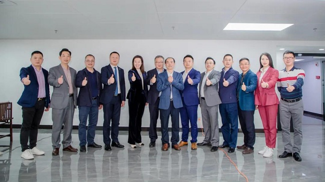 广东省物业管理行业协会秘书长陈绩伟(中)、副秘书长冯书丽(左)、朱瑞平(右)