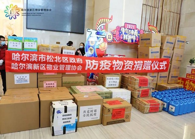 哈尔滨新区物业管理协会在疫情防控期间,为松北区政府和松北区物业企业之间搭建了十分重要的桥梁纽带作用,及时把物业企业在防疫期间遇到的困难反馈给政府,在区政府各级领导和物业同仁企业的大力支持下,为新区物协调拨了口罩、消毒液等急需的防疫物资。
