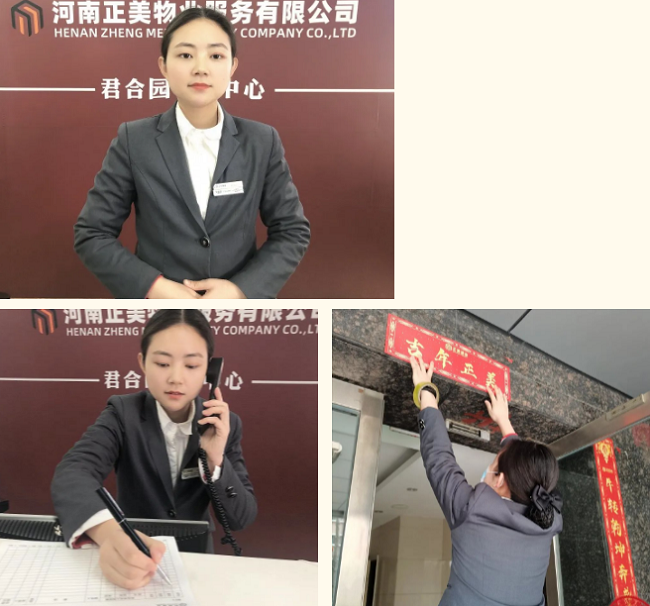 2018年8月入职正美物业,2020年春节恰逢疫情,作为郑州乾宏领秀空间项目时任客服主任,积极热情投入到抗疫工作中,尤其在复工临近、业主大量返回阶段,不辞辛苦为168户业主提供“代购、代取”等隔离期6项关爱服务,为“疫”消得人憔悴。2020年8月,跟随公司发展步伐,来到洛阳君合园项目。今年春节是君合园项目业主和正美物业携手共度的第一个春节,作为项目客服负责人,为了让业主感受到正美物业人的服务温度,顾不上父母殷切期盼之情,再次主动放弃春节和家人团聚的机会,留守项目值班。通过电话、视频,用真诚言辞说服家人,同时,通过客户团拜走访、业主反馈问题有效处理等,在春节期间让业主持续体验专精专诚的正美服务。