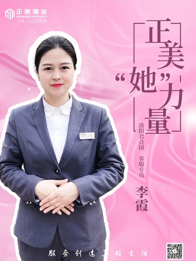 李霞,君合园客服专员,性格温和、工作主动,在日常客户服务中、在各类社区活动组织中,以规范礼仪与用心、有温度的服务,与业主形成良好互动。如,积极关心和帮助7号楼独居的90岁高龄钻石婚老年业主夫妇等,多次收到业主锦旗。
