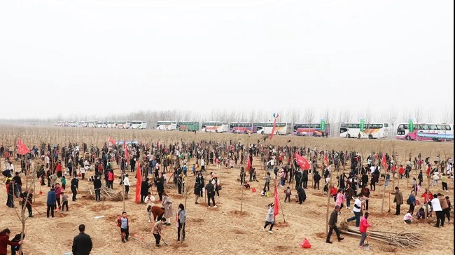 3月13日,在建业物业、建业旅游的组织下,来自10个城市的1000余位自发报名的业主齐聚兰考国储林参与植树活动。
