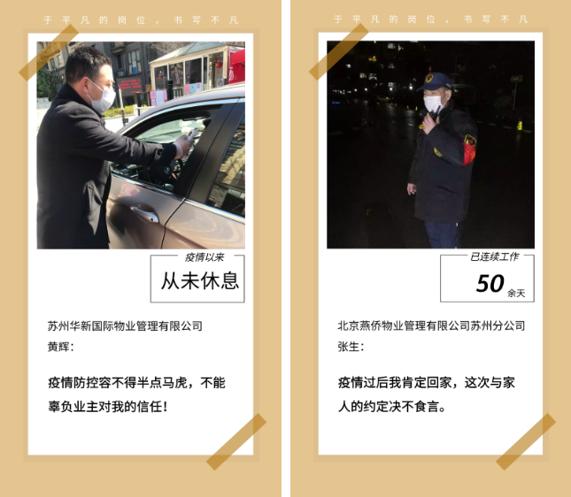 2020年的疫情下,苏州物业行业的安保人员,不少是来自祖国四面八方的普通人;他们放弃了与家人一起团聚的机会;他们毅然选择留在苏城做一件伟大的事;他们置自己的生命安全不顾,24小时轮岗,用生命守护生命;他们日夜坚守在疫情抗击的一线,筑起一道道安全的防线!