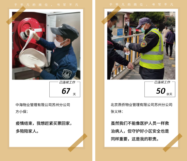 “今年国家号召就地过年,从公司防疫的需要角度出发,鉴于防疫的紧张局势,我觉得,我必须要坚守岗位,留在项目上,防控疫情,守护好业主家门口的第一道防线,为国家的防疫工作做出自己的贡献。”刘帮奇说:“哪里有需要,我们就要去到哪里,我们服务的业主有需要,我们就要有这样的觉悟和心理准备。”