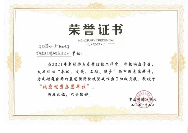 近日,华润置地(北京)物业管理有限责任公司石家庄分公司收到了来自中山街道办事处的感谢,并荣获“抗疫优秀志愿单位”称号。同时,七名公司员工因在防疫工作中的突出表现,荣获“优秀志愿者”称号。