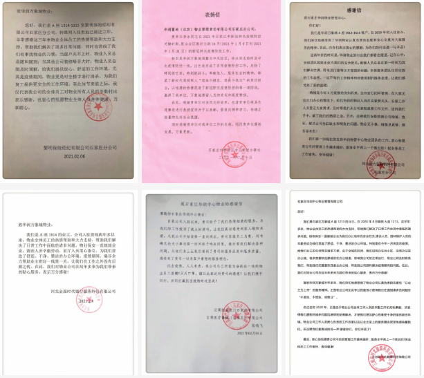 因此,自疫情爆发以来,石家庄华润中心物业管理部还获得了除街道办外,众多客户、业主的认可。他们纷纷送上锦旗和感谢信,表达对疫情期间物业工作的认可与称赞。