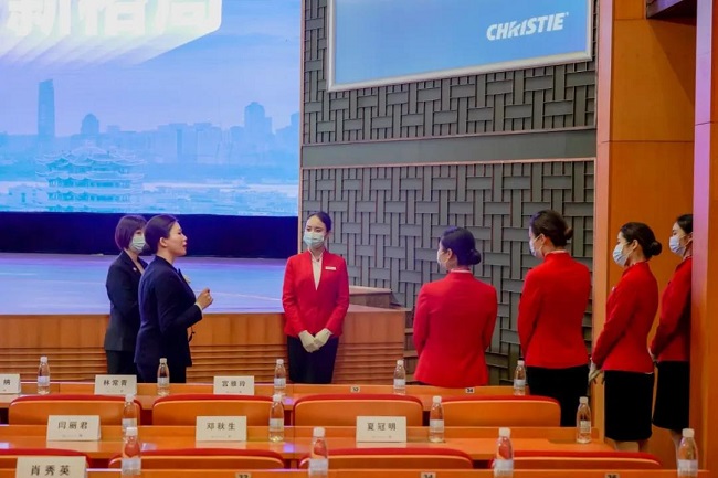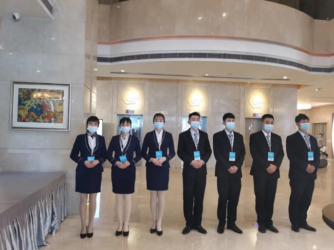 礼仪对接组的小哥哥、小姐姐们在会前进行多次排练、走位,在自己的岗位上以饱满的精神面貌迎接参会嘉宾。