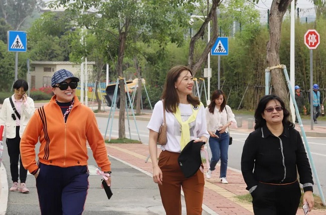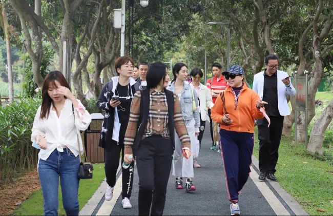 人间最美四月天,草色青青柳如烟。交流联谊会前,参会人员一行在绿清控股工会主席齐慧陪同下,来到大运公园绿道徒步健身。园内的神仙湖波光粼粼,群山环绕郁郁葱葱。大家三五成群,在感受大自然美景的同时,相互交流工作心得、增进彼此了解。
