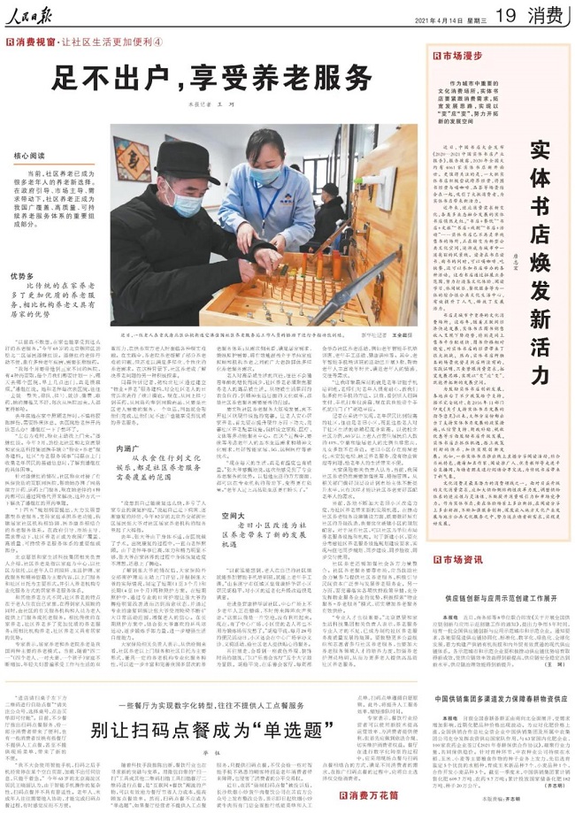专业人才也很重要。北京愿景和家生活科技集团相关负责人表示,养老服务专业人才的不足,已成为制约社区养老服务高质量发展的瓶颈。要鼓励更多公益组织和志愿者参与社区养老服务,也要加大养老服务领域人才的培养力度,加强养老护理员培训,从而为更多老人提供高品质社区养老服务。
