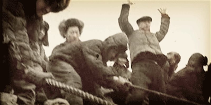 钻井队靠双手和双肩把几十吨的钻井设备卸了下来,装上汽车,搬运到井场。三天三夜,井架立在了茫茫的荒原上。在人拉肩扛的过程中,他们喊出了“石油工人一声吼,地球也要抖三抖。石油工人干劲大,天大困难也不怕”的豪言壮语。