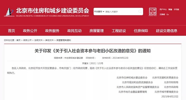根据国务院办公厅《关于全面推进城镇老旧小区改造工作的指导意见》和北京市市委市政府工作部署,为构建政府与居民、社会力量合理共担改造资金的工作机制,逐步形成居民出一点、企业投一点、产权单位筹一点、补建设施收益一点、政府支持一点等“多个一点”资金分担方式,建立共同参与改造、共同治理社区、共同享受成果的老旧小区改造良性循环新机制,本市将引入社会资本参与老旧小区改造,现提出如下意见: