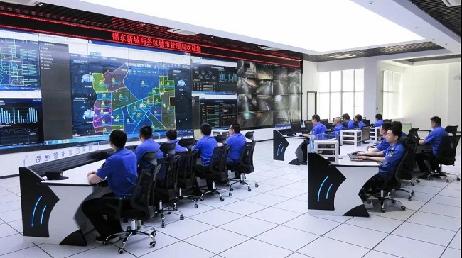 在锡东新城智慧指挥中心,有一面由 56 块 LED 显示屏组成的智慧大屏,它是锡东保利智慧城管的“眼睛”与“大脑”。集成了物联网、云计算、大数据等各种现代信息技术,帮助物业实现了智能化、标准化、快速化的城镇全域管理。