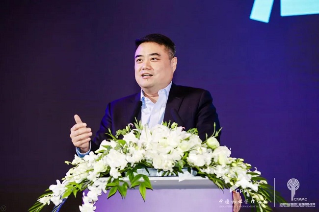 中国物协副会长、金科智慧服务集团执行总裁罗传嵩宣读《美好生活服务计划倡议书》