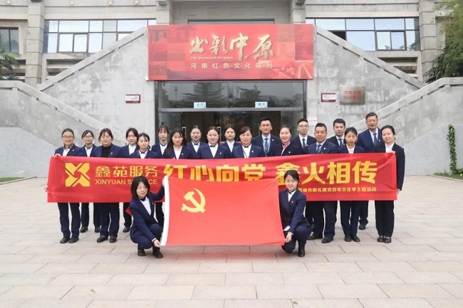 在郑州,鑫苑服务郑州公司党员、员工及业主代表走进河南博物馆“出彩中原——河南红色文化陈列展”,深入学习大别山精神、红旗渠精神和焦裕禄精神,了解在中国共产党的领导下河南人民救亡图存、建设河南的伟大历程和改革开放取得的辉煌成就。