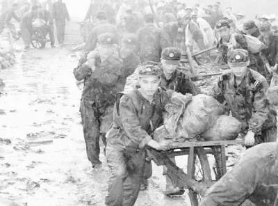 199887日下午,江西九江城防大堤45号闸口被凶猛的江洪撕开60米缺口,九江城和京九铁路危在旦夕。党中央、国务院和中央军委周密部署,几路官兵迅即奔赴九江,支援堵口抢险。在九江生死大决战的关键时刻,人民子弟兵连续激战5个日夜,重新在决口处筑起一座钢铁大坝,险情终于得到控制。