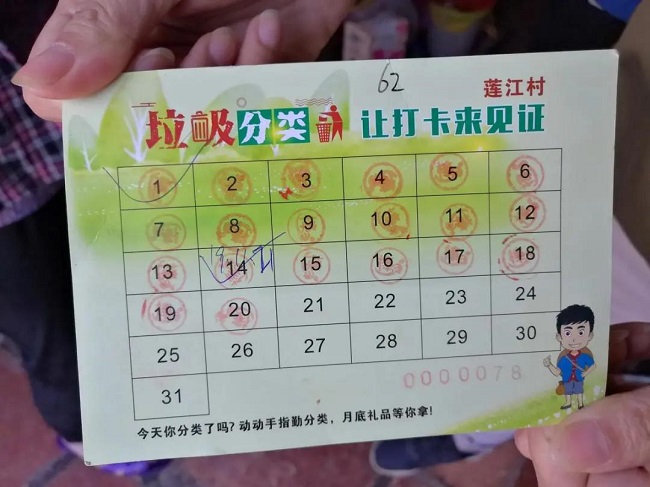 在莲洲镇,一方面,村民参与垃圾分类可获得积分奖励,每家每户的分数会通过榜单公示,垃圾分类做得好不好一目了然;另一方面,积分兑换可得到实物奖励,推动村民自觉形成生活垃圾分类的好习惯。