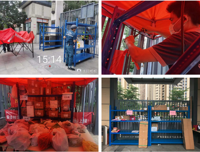 在社区门口搭建临时快递存放点