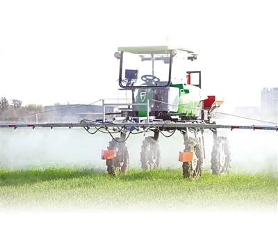 3月2日,江苏省常州市孟河镇小麦种植园区的种植户用无人植保机作业。夏晨希摄(影像中国)